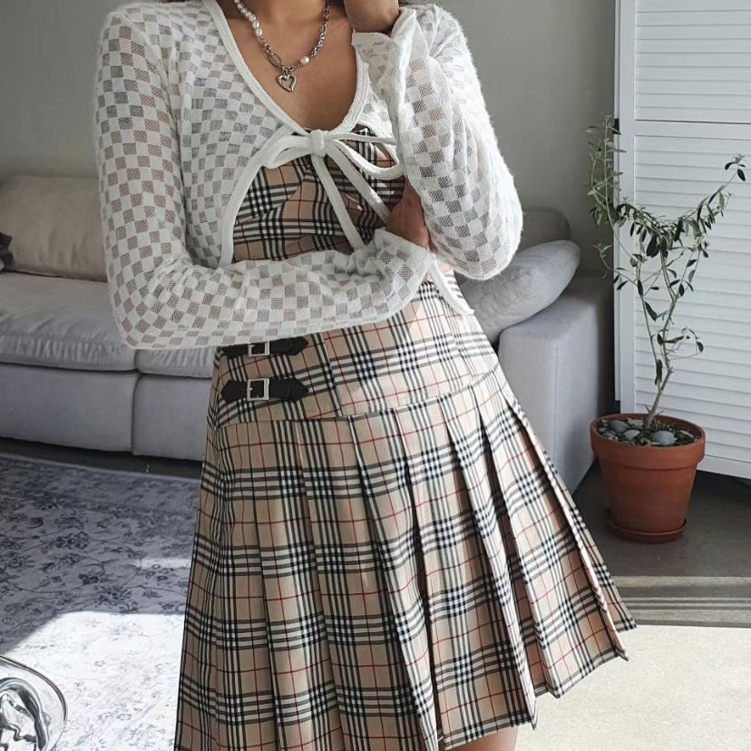 掛頸幼帶黑白格仔Bra Top🖤🤍(C023)